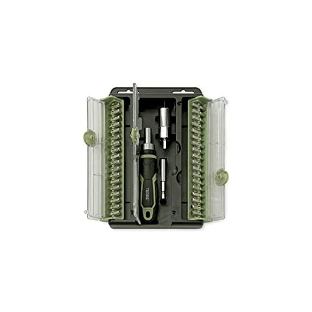 Terre Products, 40 in 1 Mini Tool Set, Multi Bit Ratcheting Screwdriver with Ergonomic Non-Slip Handle, Universal Socket, Magnetic Adapter, 120mm and 150mm Extension Bars, Quick Bit Release Technology