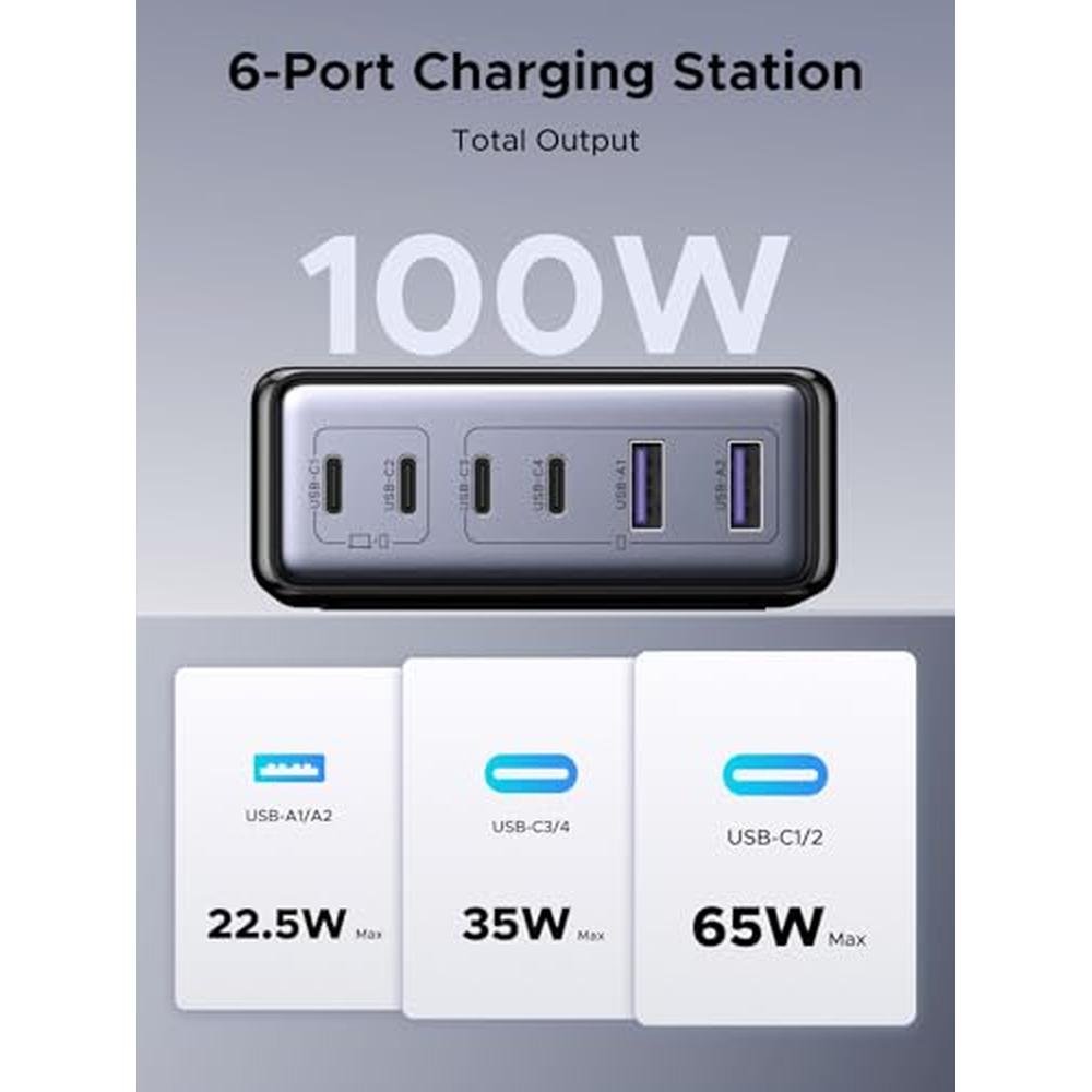 High-Performance 100W USB C Charging Station | UGREEN 6-Port GaN Desktop Charger | Fast Charging for Multiple Devices