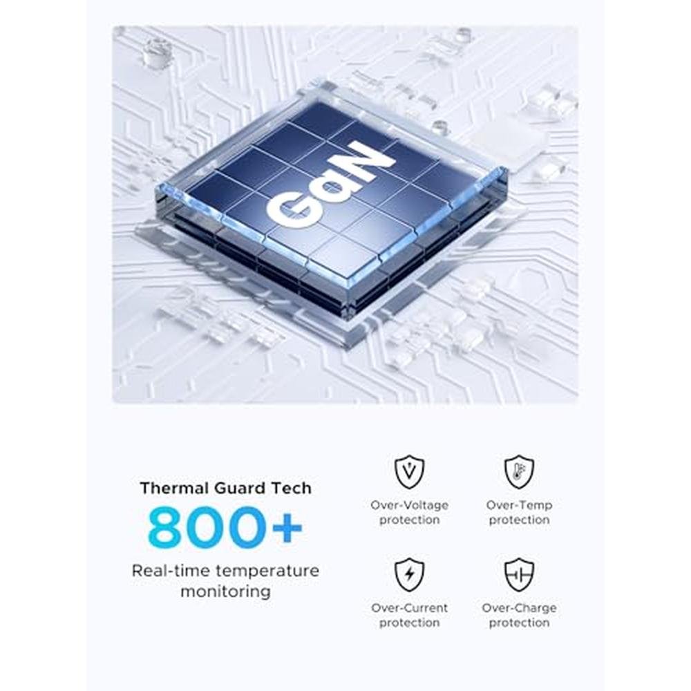 • Utilizes advanced GaN technology to deliver rapid charging speeds while minimizing energy loss and heat generation, ensuring a safe and efficient charging experience.
