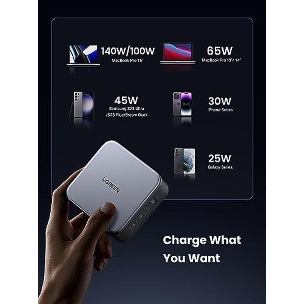 Experience unparalleled charging speed and convenience with the UGREEN Nexode 140W GaN USB C Laptop Charger. This high-performance, 3-port PD 3.1 PPS foldable fast wall charger is designed for demanding devices like the MacBook Pro 16", iPhone 17/16/15, Pixel 10/9, Galaxy S25/S24, and Chromebook. With its 240W cable, compact design, and foldable structure, you can enjoy rapid power delivery and take this charger on the go. Upgrade your charging experience with the UGREEN Nexode 140W GaN USB C Laptop Charger, engineered for high-end devices and users who demand the best.