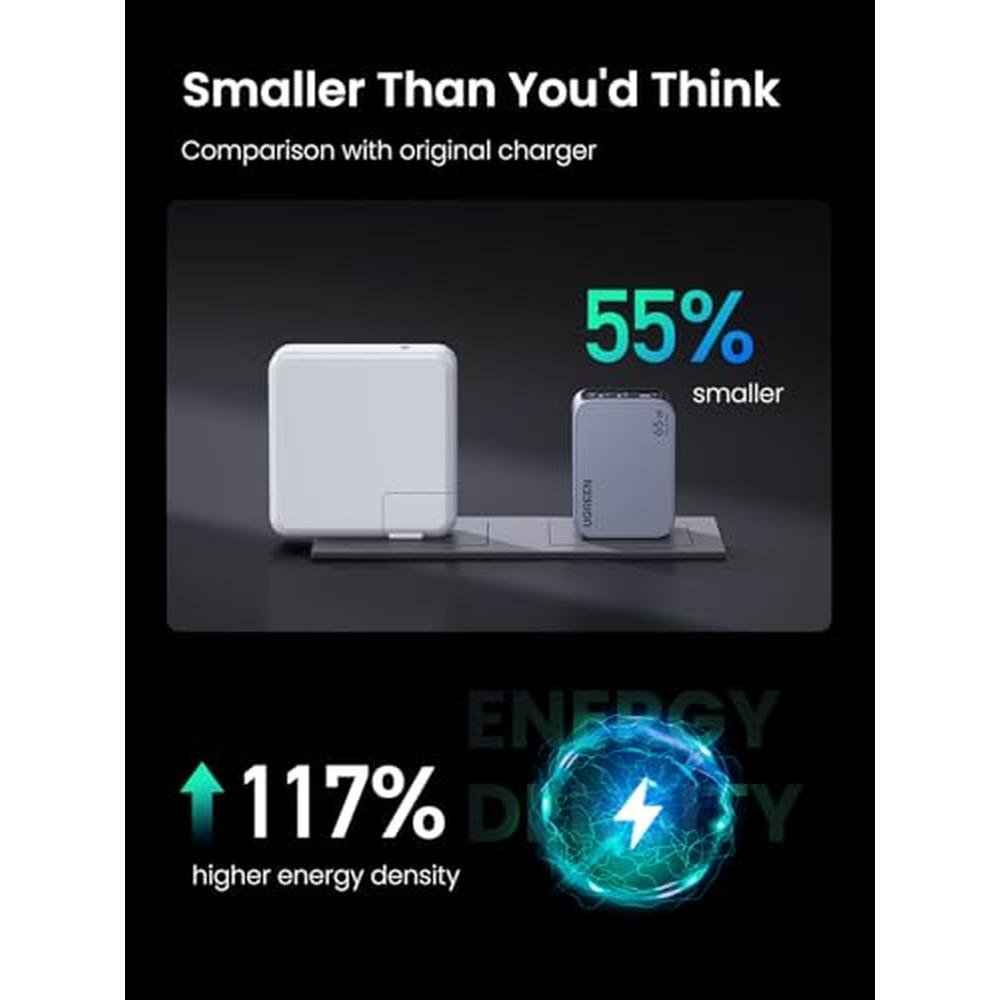 Experience unparalleled charging efficiency with the UGREEN Nexode Pro 65W GaN USB C wall charger, designed to deliver fast and reliable power to your devices. This compact, foldable 3-port charger is perfect for travelers and professionals alike, supporting a wide range of devices including MacBook Pro/Air, Pixelbook, Dell XPS, iPhone 17/16/15 Series, Galaxy S25/S24 Ultra, and Pixel 10/9. With its MFi certification and 65W PPS fast charging capabilities, you can rest assured that your devices are charging safely and efficiently. UGREEN's Nexode Pro series brings a next-generation charging experience, with 2 USB C ports and 1 USB A port, fast charging four of your devices at the same time with an intelligent current distribution system, providing a total of up to 65W power. Discover the future of charging with UGREEN's premium-grade solutions.