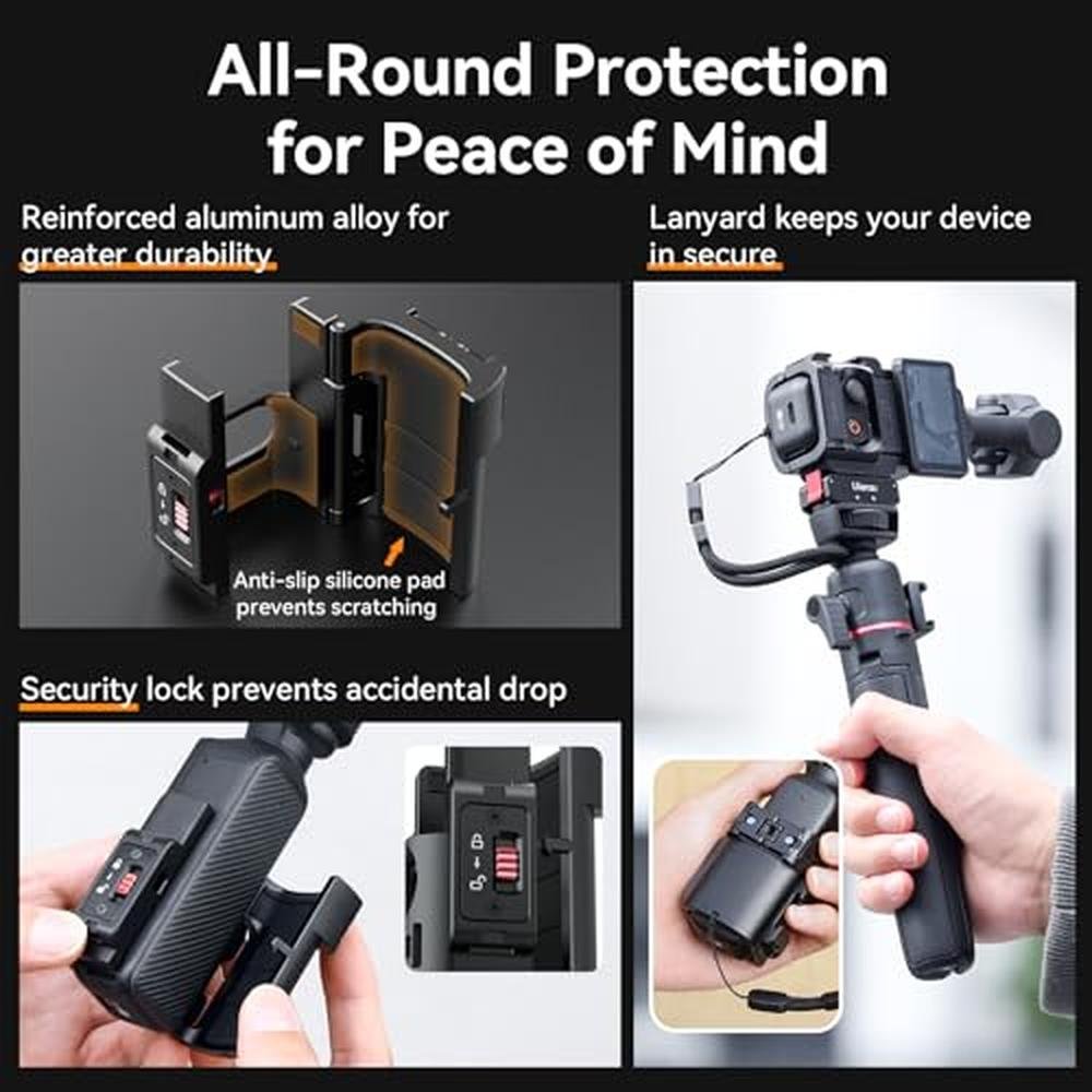 ULANZI PK-06 Expansion Adapter Accessories for DJI Osmo Pocket 3 - Aluminum Protective Cage Metal Bracket Mount with 1/4 Screw Holes/Gopro Adapter/Cold Shoe/Osmo Action Quick-Release