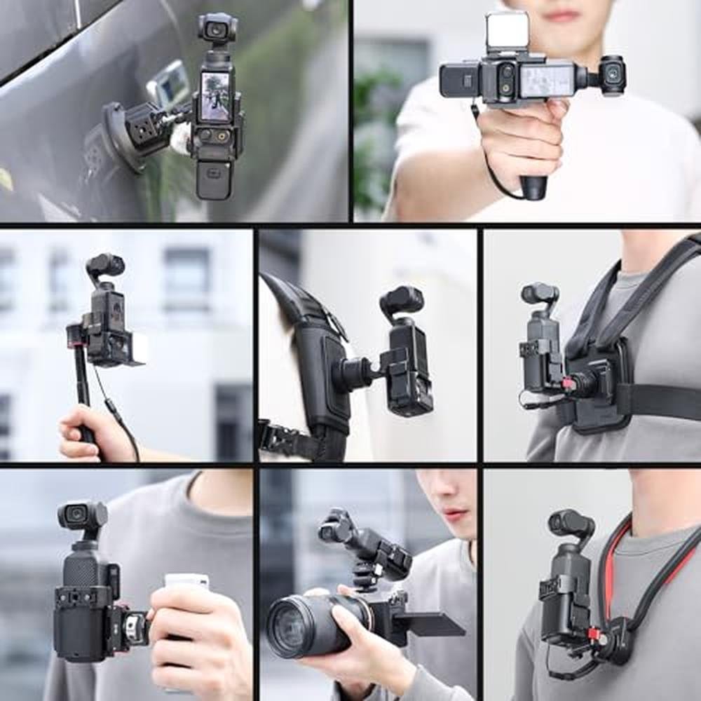 The ULANZI PK-06 Expansion Adapter for DJI Osmo Pocket 3 is crafted from premium aluminum alloy, delivering a sleek and comfortable feel while ensuring exceptional durability. It seamlessly integrates with your Pocket 3 and offers a variety of mounting options, empowering you to effortlessly capture stunning visuals in diverse scenarios. ULANZI PK-06 Expansion Adapter for DJI Osmo Pocket 3, Aluminum Mount Cage Bracket Adapter with 1/4 Screw Holes/Gopro Adapter/Cold Shoe/Osmo Action Quick-Release.