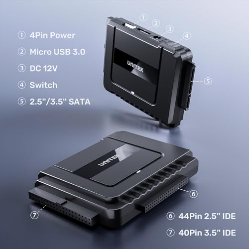 Experience the ultimate convenience with the Unitek USB C to SATA IDE Adapter, designed to seamlessly connect your hard drive to your computer. This premium-grade external hard drive adapter converter kit is compatible with 2.5/3.5 inch HDD/SSD hard drives, as well as DVD-ROM/CD-ROM/CD-RW devices, making it an ideal adapter hard drive for PC users. With its USB A connector and 12V/2A power adapter, you can easily convert your hard disk to a USB-connected device, providing a convenient and reliable way to transfer data. Whether you're looking for an adapter hard drive to usb or an adapter hard disk laptop solution, this kit has got you covered. Its universal compatibility and plug-and-play functionality ensure a hassle-free experience.