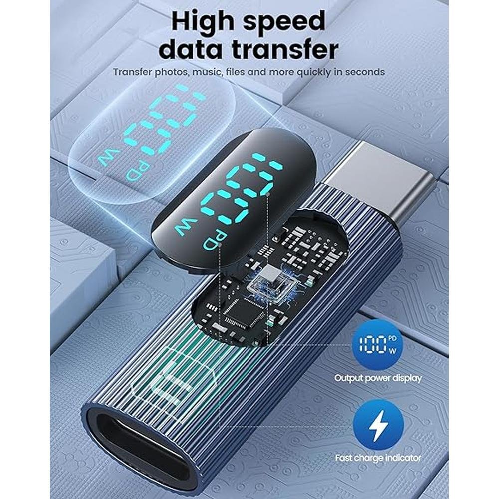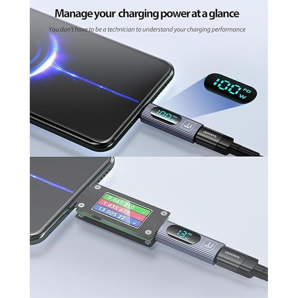 Adapter 100w | Toocki USB-C 2-Pack Female to Male Extension with Power Meter Tester Digital Display | Premium Quality