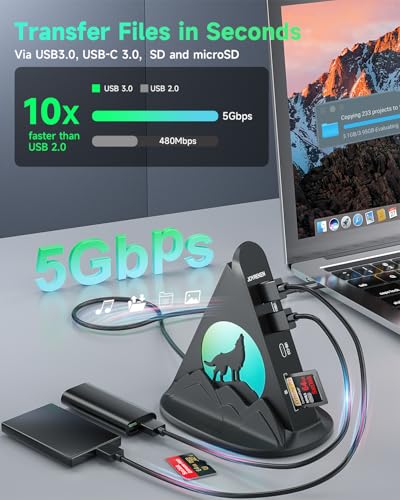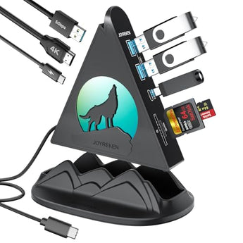 Indulge in the luxury of premium connectivity with our 8-in-1 Wolf USB C Hub, expertly crafted to deliver exceptional results. This sophisticated hub adapter is designed to provide a seamless user experience, combining advanced features, sleek design, and unparalleled performance. Whether you're a discerning professional or a tech enthusiast, our top-rated product is the ideal solution for all your connectivity needs. With its vibrant RGB lighting, unique wolf motif, and integrated SD/TF card reader, this hub adapter is the perfect accessory for any upscale workspace.