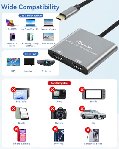 - Our adapter dual monitor solution is compatible with a variety of high-end devices, including laptops, tablets, and smartphones, making it an essential accessory for anyone looking to expand their screen real estate