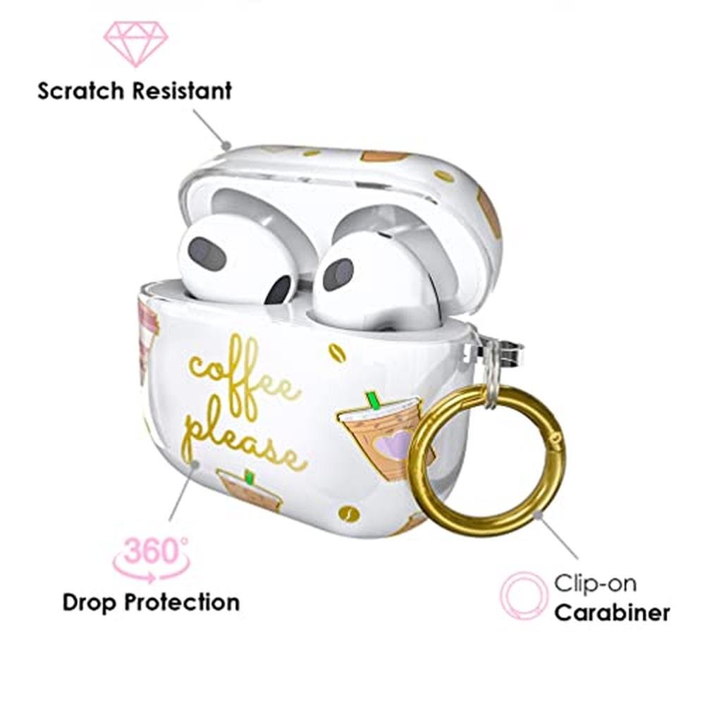 Make your AirPods 3 stand out with a stylish, protective case Paired with a metal carabiner that you can clito your keys, bag, or pants for easier access and less misplacing This 2-piece, hard case is created with premium materials that won t fade in color, scratch easily or crack. Compatible with wireless charging. AirPods 3 not included.