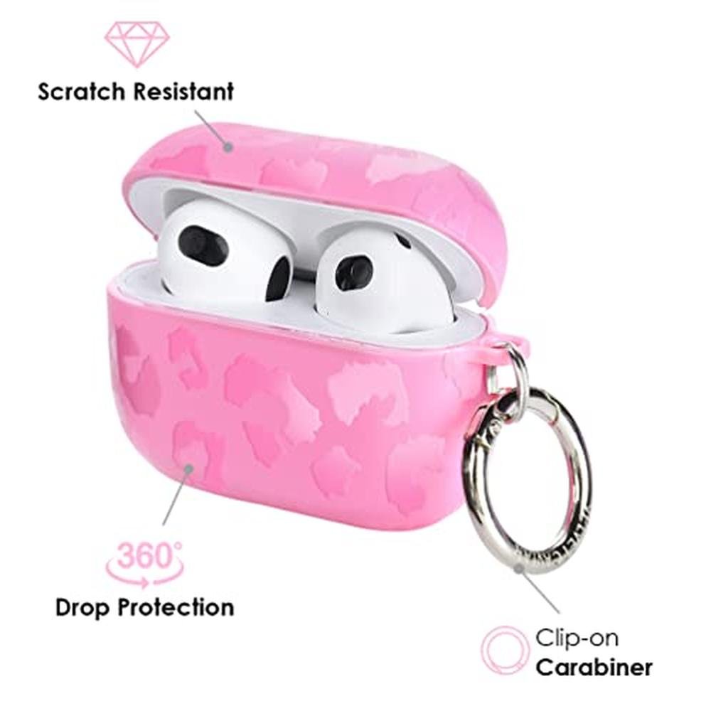 Hot pink leopard case compatible with AirPods 3rd Generation.