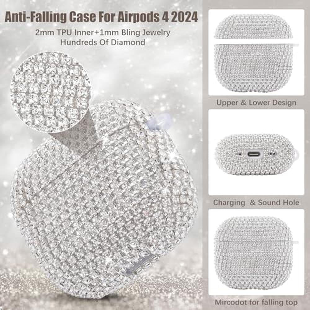 - 360 Full Protection - The diamond airpods4 case is glued with a 2mm clear military TPU layer and a 1mm bling diamond layer with safety no foul glue, The 3mm ultra thick iPod 4th generation case can well protect your Apple Airpods 4 generation wireless charging case from impact scratch falling etc, the inner also design mircodot for falling top.
