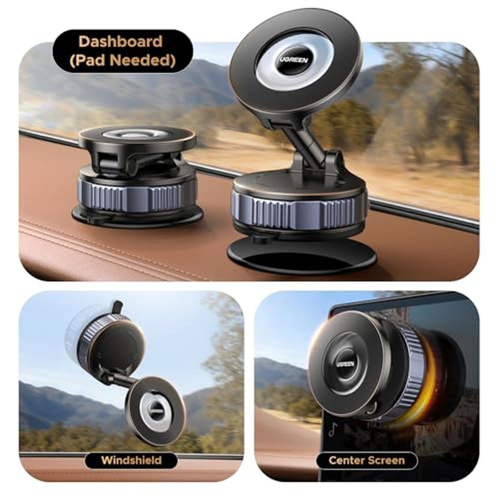 UGREEN Car Phone Mount for MagSafe [22xN52 & 80 LBS] 3600gf Magnetic Phone Holder Vacuum Suction with 360Rotatable Dashboard Windshield Compatible with iPhone 17 16 15 14 13 12 Plus Pro Max Series