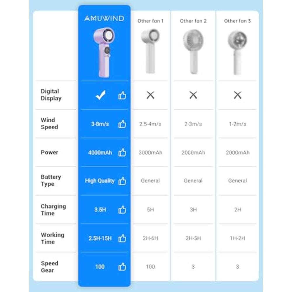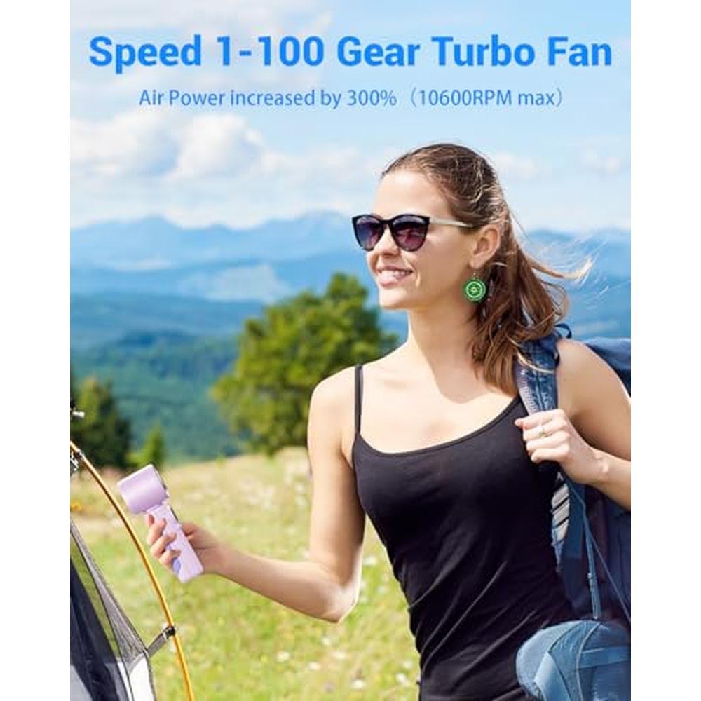 - The Amuwind Portable Hand Held Turbo High Speed Personal Fan features a high-performance motor with 100 gear speed wind, reaching a maximum speed of 10600RPM and 8m/s