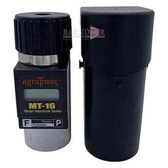 Direct readout for 16 different grain scales. Each scale adjustable to match local elevator. Automatically averages up to 99 test results. High-frequency, capacitive circuit improves overall accuracy. Convenient carrying case with shoulder strap included. Moisture range: 5% to 40% depending on grain tested. Temperature range: 32 to 113F (0 to 45C). Repeatability & Accuracy: 0.5% in normal moisture range for stored grain. Display resolution: 0.1% moisture. Corn 5-21%, Corn 17-40%, Wheat-soft, Wheat-hard, Soybeans, Sorghum, Oats, Canola, Barley, Rye, Beans Paddy Rice, Flax, Safflower, Sunflower-oilseed, Sunflower-confect, Arbitrary Scale.