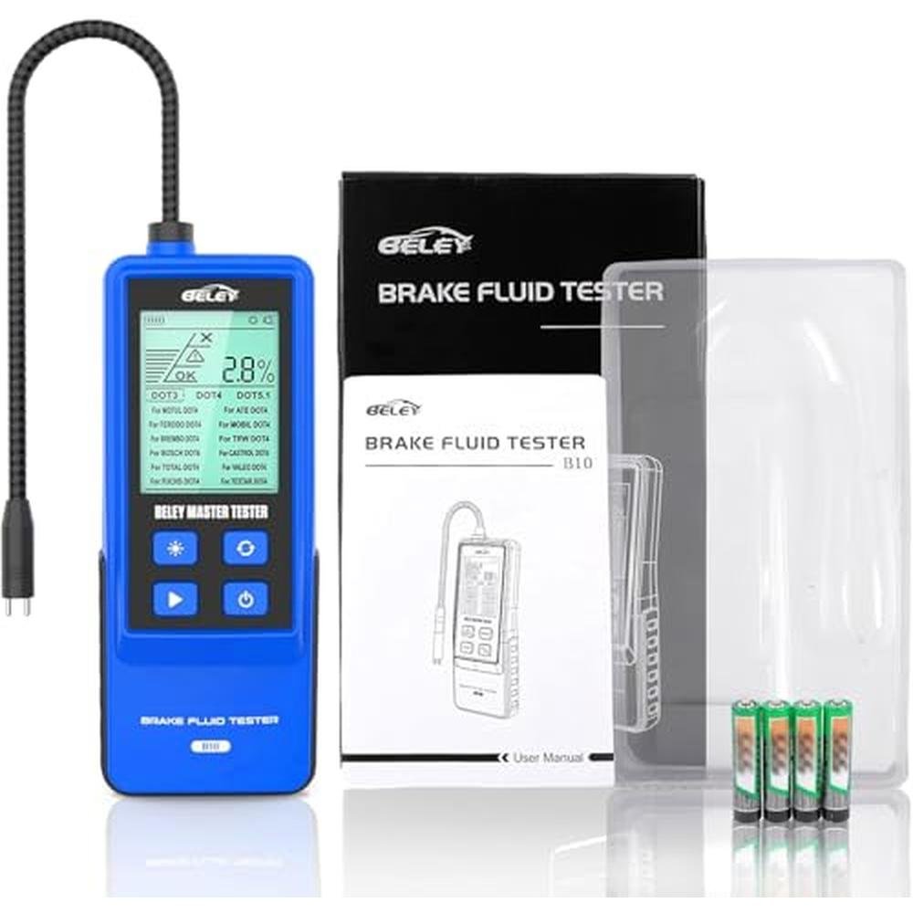 BELEY Brake Fluid Tester Digital Automotive Moisture Boiling Point Detector for DOT3,DOT4,DOT5.1 Brake Fluid with 2.8" Display, Audible Alarm, High-Precision Probe B10