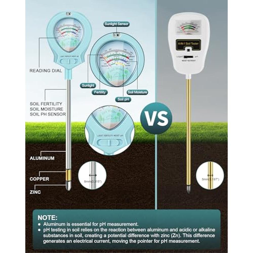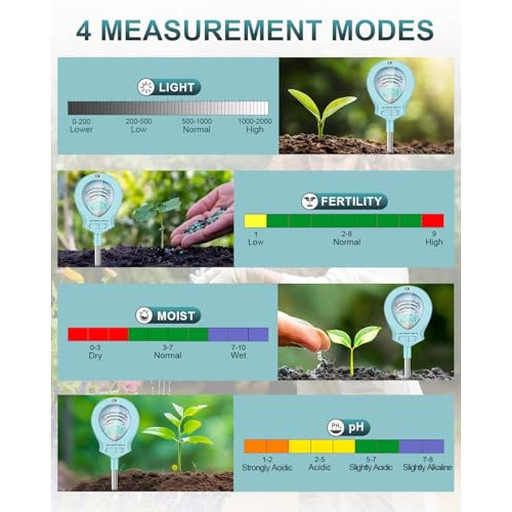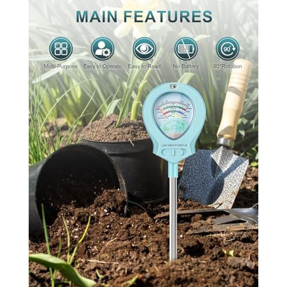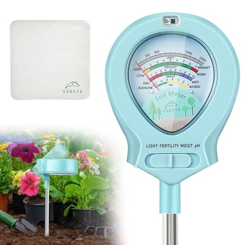 CUBETA Upgraded Soil Moisture Meter for Plants, 4-in-1 Soil pH Meter, Soil Tester for Light/Moisture/pH/Fertility, Soil pH Test Kit for Garden, Lawn, Greenhouse, Indoor & Outdoor, Skyblue