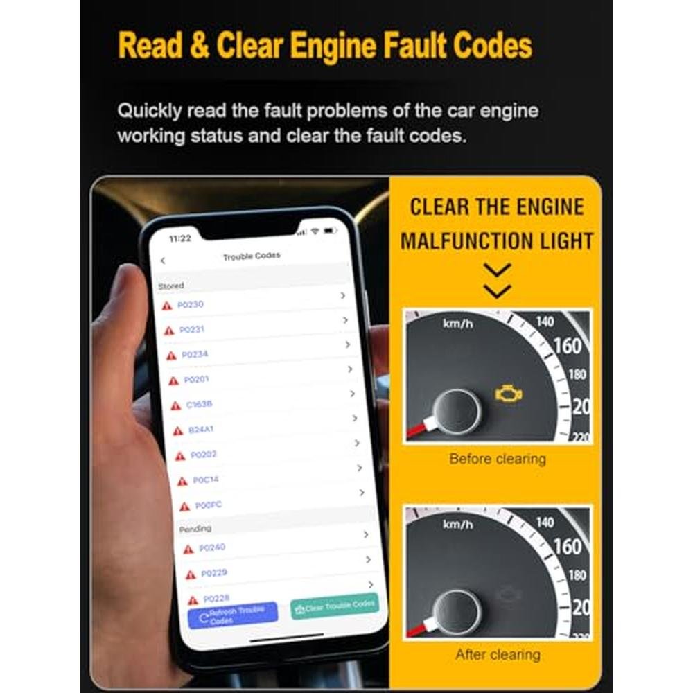 FlyroadUp OBD2 Scanner Bluetooth for iPhone iOS Android OBDII Diagnostic Scan Tool Code Reader to Clear Error Code