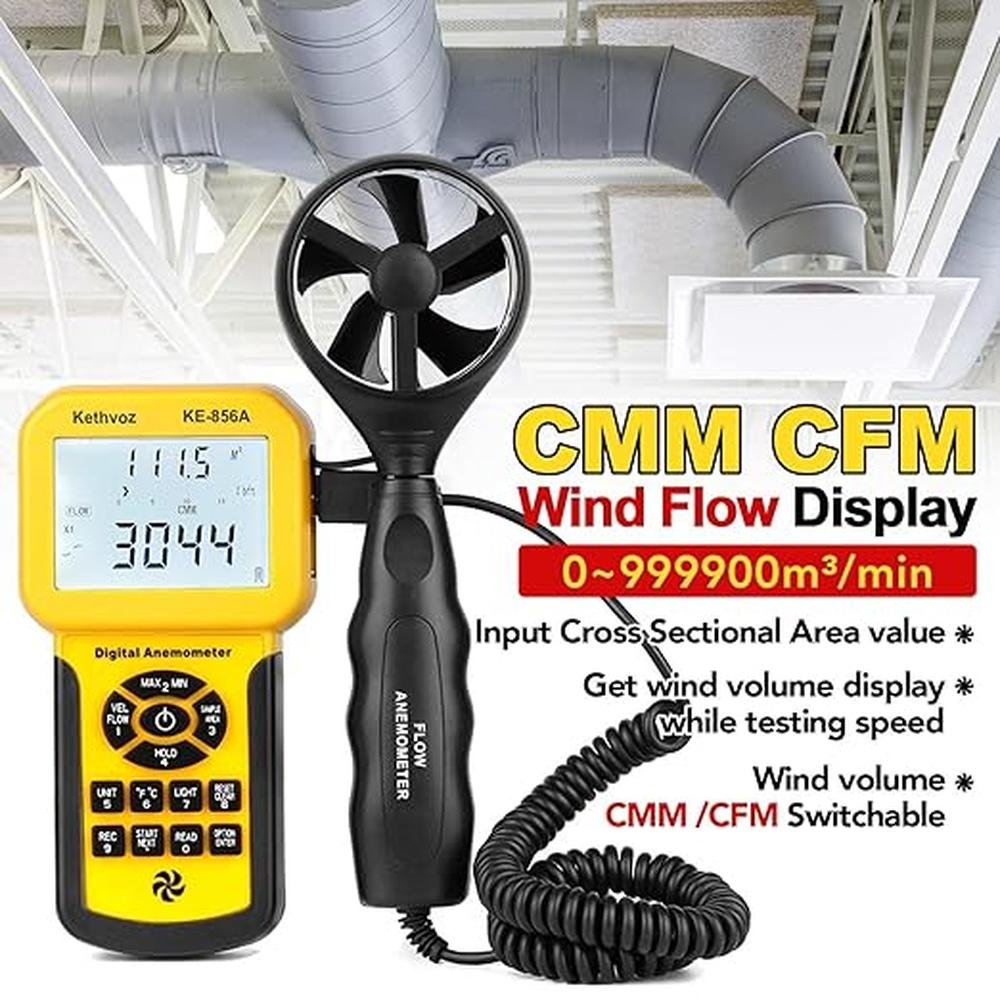 HVAC CFM Anemometer, Kethvoz Wind Speed Meter Commercial Air Flow Tester w/Data Storage PC USB Connectable Measure Windspeed Air Volume Temperature for AC Dust Collection System 856A