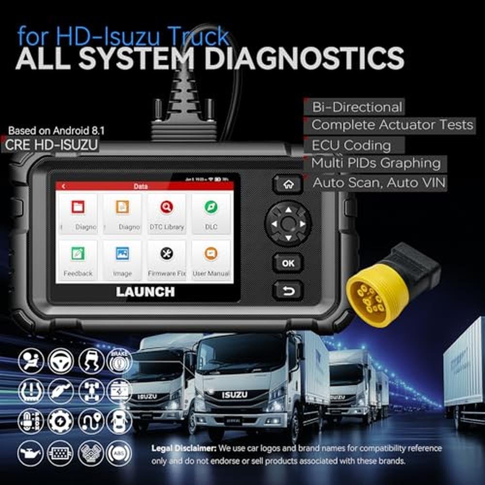 The LAUNCH CRE Elite HD-IS is a powerful diagnostic scan tool designed for heavy-duty trucks and commercial vehicles. This advanced device supports full-system diagnostics, including DPF regeneration for ISUZU models. Ideal for diesel engines, it offers bidirectional control to perform comprehensive tests and adjustments.