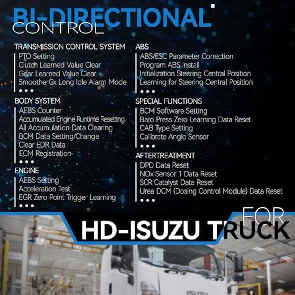 - Compatible with Isuzu Diesel Custom-developed for a wide range of diesel vehicle models, including but not limited to C, E, L, F, G Series, FX/FY/GX Series, N Series,TF Series, HITACHI, Off-Road Industrial Engine and more. Legal Disclaimer: The vehicle brands and models listed are provided for compatibility reference only and do not imply endorsement or the sale of products related to these brands.