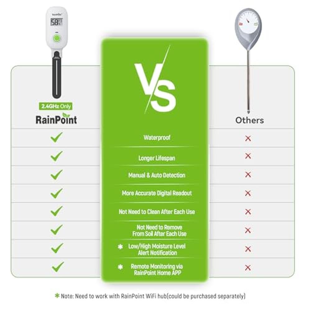RAINPOINT Smart Digital Leave In Soil Moisture Meter without WiFi Hub