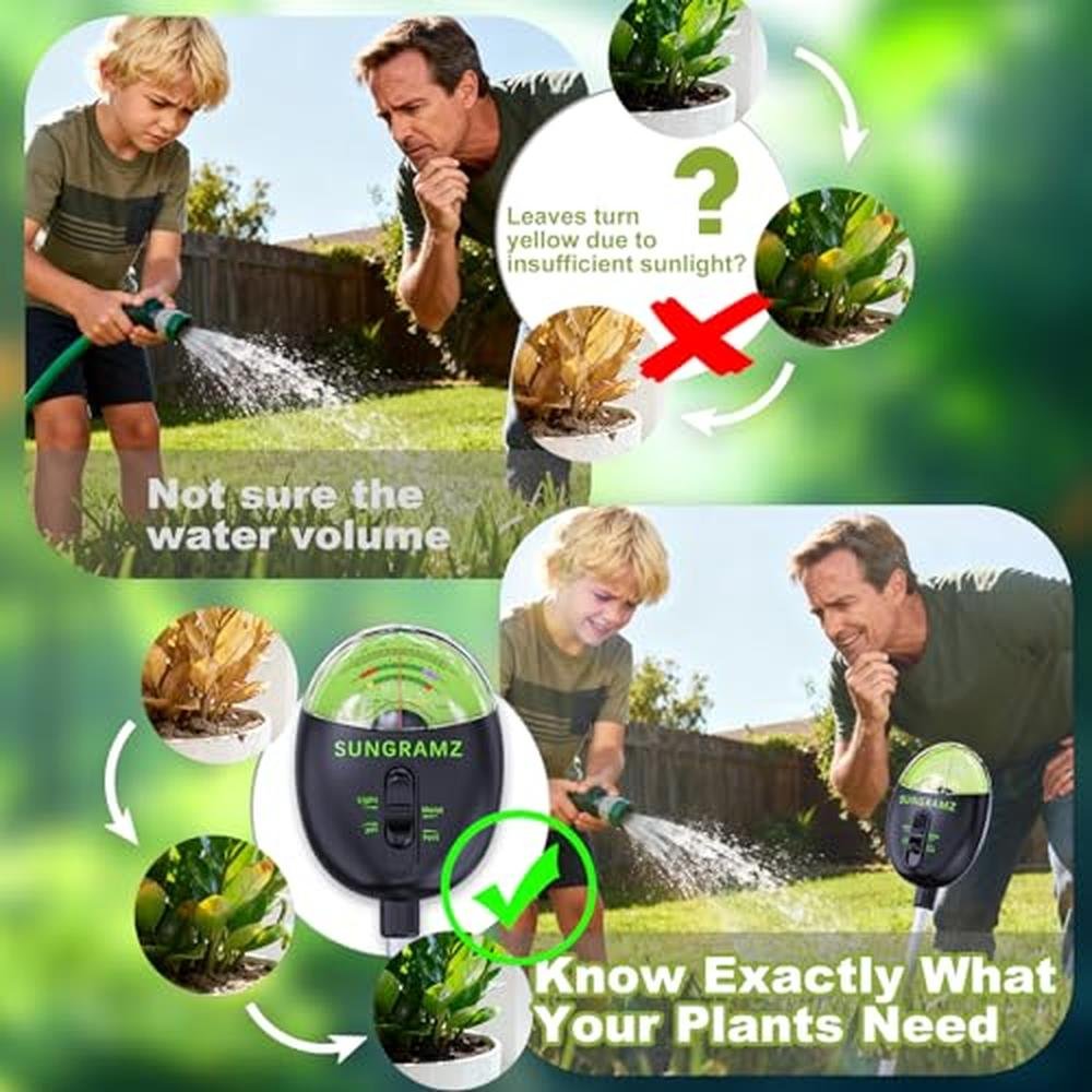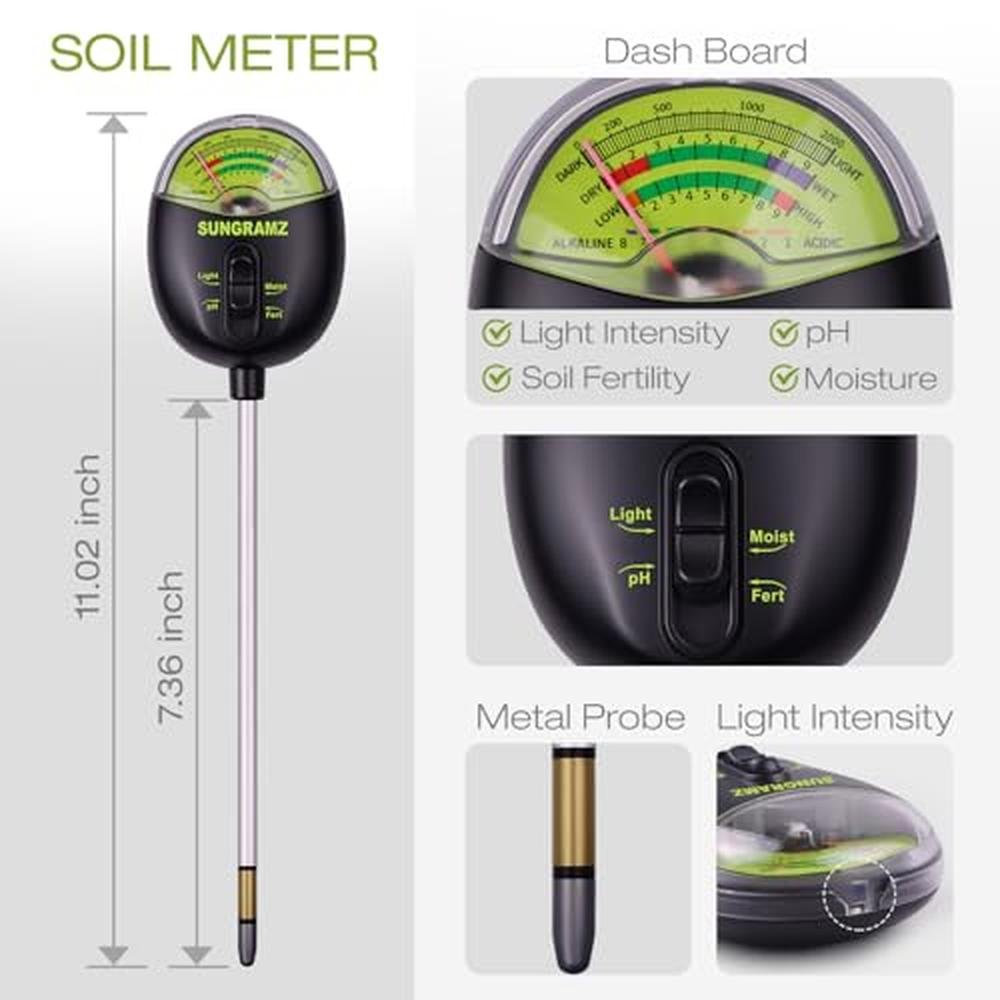 - All-in-One Soil Monitoring Tool: Designed to test soil moisture, pH level, sunlight intensity and nutrient content, this soil pH tester helps optimize plant health by giving you clear insights into soil conditions for smart, streamlined use