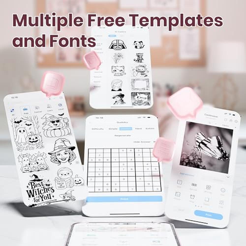 • The printer comes with 3 rolls of sticker paper and multiple built-in templates and borders, perfect for organizing and decorating various items