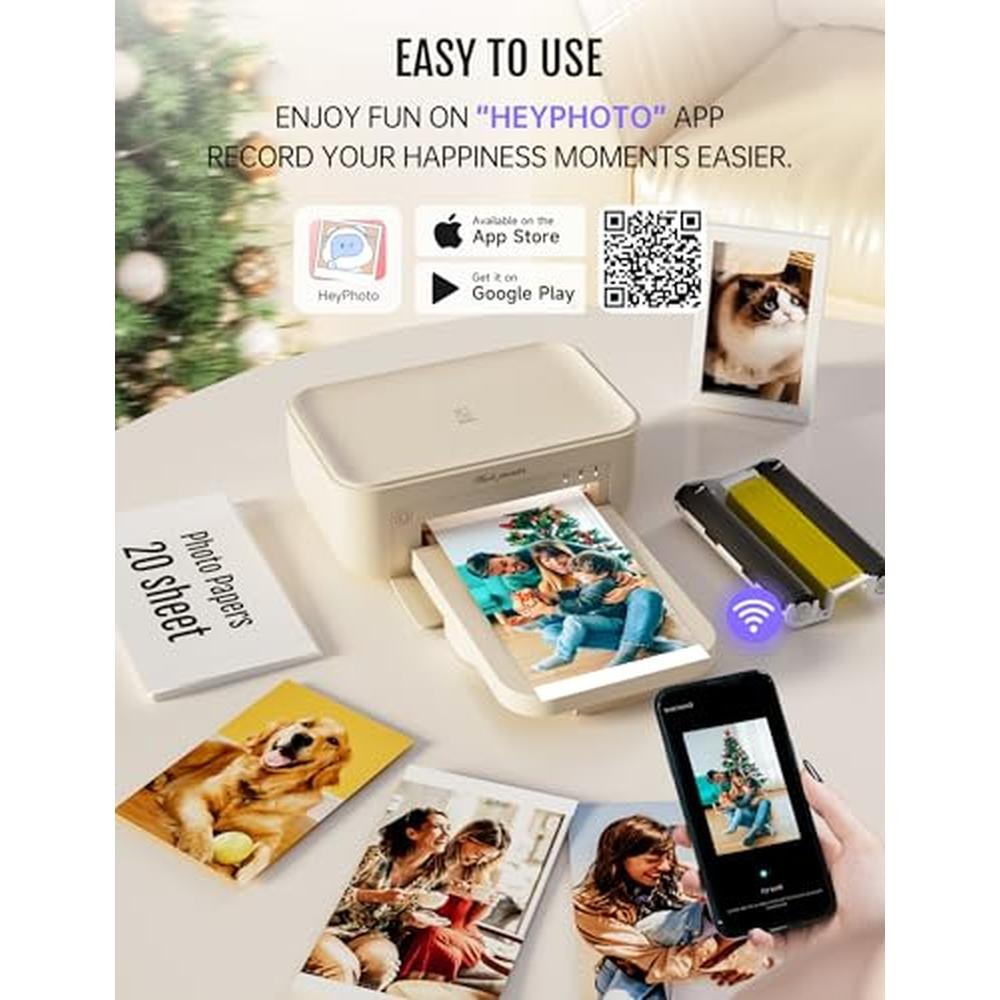Experience the ultimate in instant photo printing with the iDPRT 4x6 Photo Printer, a top-tier device offering high-quality output with advanced dye sublimation technology. With seamless Wi-Fi wireless connectivity, you can effortlessly print photos from your iPhone or Android device, making it an ideal choice for those seeking a reliable and portable picture printer solution. This premium-grade printer comes with 108 sheets of photo paper and 2 cartridges, providing a great value for your investment. Whether you're looking for a photo printer best buy or seeking to enhance your photo printing experience, this device is sure to deliver. Print 4x6 and multiple photo sizes from smartphones and computers via Bluetooth and Wi-Fi, with instant printing capability and no warm-up time required. The iDPRT 4x6 Photo Printer utilizes thermal dye sublimation technology for durable, long-lasting photo quality, and with the HeyPhoto APP, you can edit and personalize your photos with custom sizes, frames, and filters, even creating 15-second AR live videos from static photos.