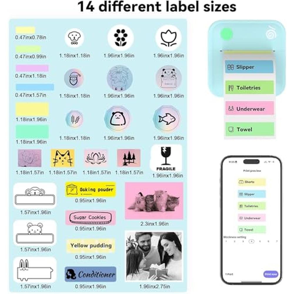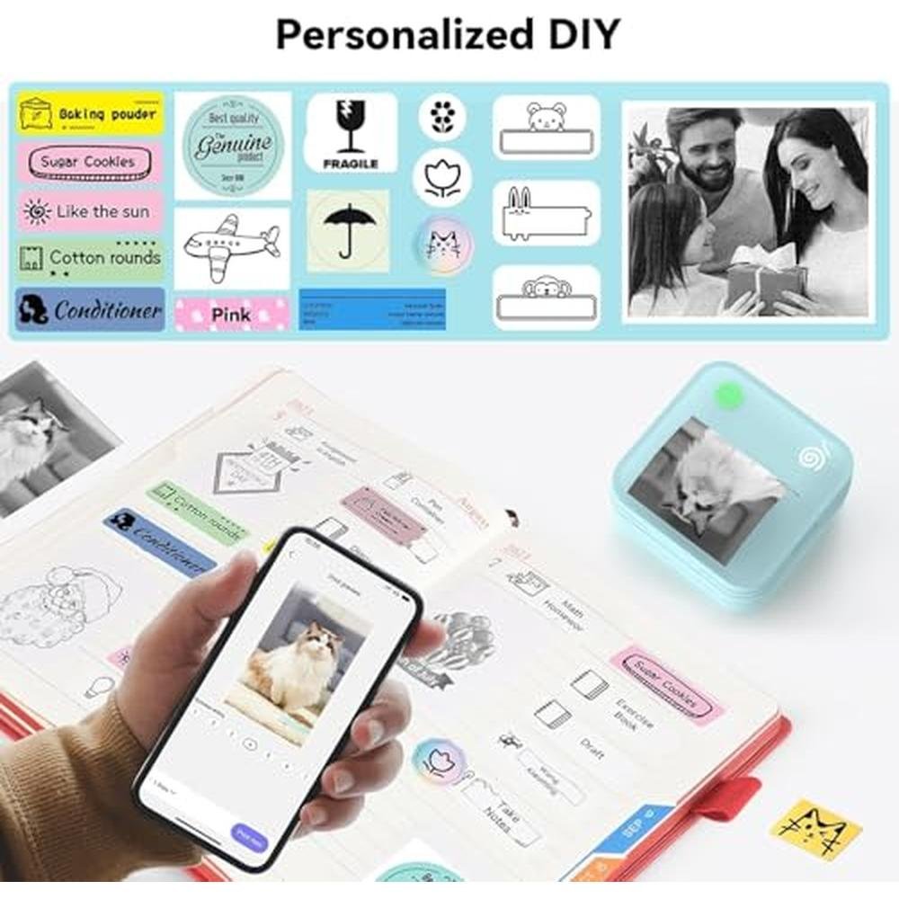 Elevate your labeling experience with high-definition inkless thermal printing, enjoying clean, fast, and high-quality printing with advanced thermal label maker technology. Equipped with a 300DPI print head and a high-speed chip, this small label printer ensures sharp text and durable results without ink or toner. This eco-friendly labeling machine supports label printer stickers, name tag printer functions, and custom labels for everyday organization.