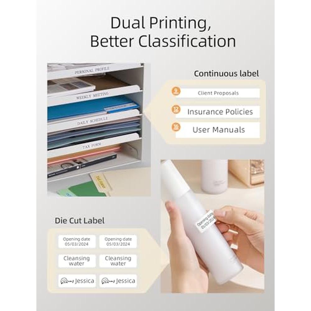 Experience the ultimate labeling solution with the Makeid Label Maker Machine, designed to work seamlessly with 9mm, 12mm, and 16mm waterproof label tapes. This portable and rechargeable device features a built-in cutter, making it easy to create professional-looking labels on the go. Compatible with both Android and iOS devices, this wireless label printer allows for effortless label creation and printing. Whether you're looking for a reliable label tape printer for industrial, office, or DIY use, the Makeid Label Maker Machine is the perfect choice. With its ability to handle waterproof label tapes, including laminated and vinyl options, you can create durable and water-resistant labels with ease.