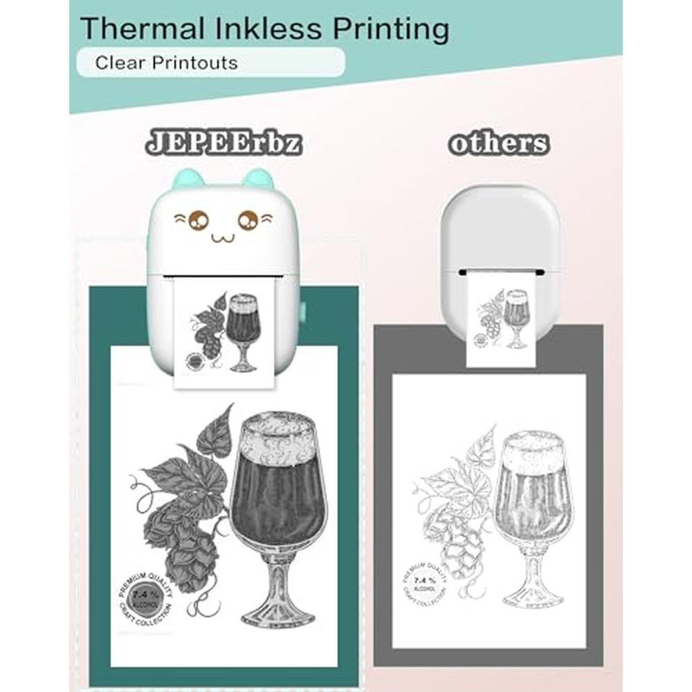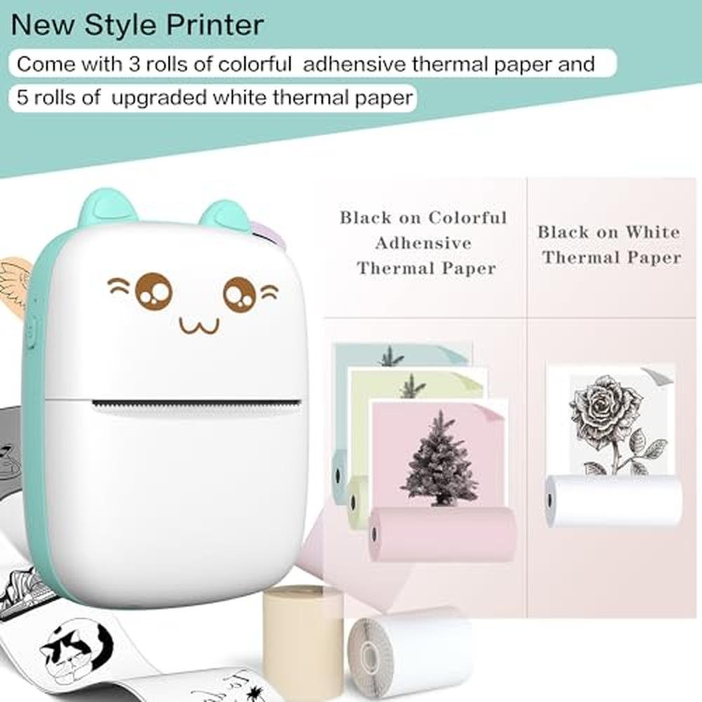Experience the freedom of portable printing with our compact and lightweight mini thermal printer, perfect for journaling, memos, photos, and more. This inkless device offers seamless Bluetooth wireless connectivity, allowing you to print from your iOS or Android device with ease. With 8 rolls of paper included, you can unleash your creativity and print stickers, photos, and other fun creations. Whether you're looking for a personal printing solution or a unique gift for girls and kids, our portable printer is the perfect choice. Elevate your printing experience with our premium-grade, high-performance device, designed to provide top-tier printing quality and durability.