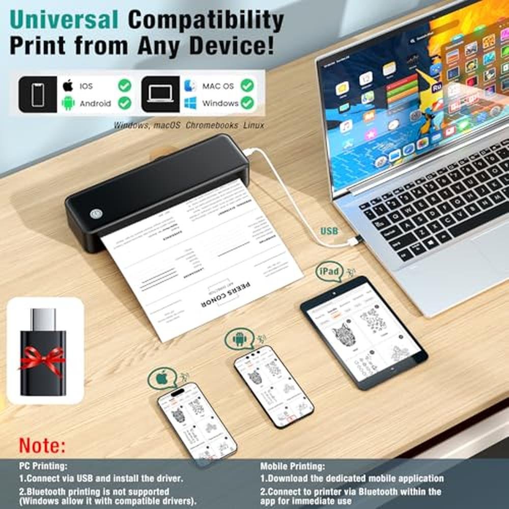 Experience the convenience of mobile printing with the PEDOOLO Portable Printer Wireless, a compact and inkless thermal printer designed for travel. Supporting thermal paper sizes up to 8.5 x 11 inches, this printer thermal device is perfect for printing receipts, labels, and barcodes on the go. With Bluetooth compatibility, you can easily connect to your iOS, Android, or laptop device, making it a versatile solution for various applications. The PEDOOLO Portable Printer Wireless comes with a starter kit that includes 2 rolls and 10 sheets of thermal paper, allowing you to start printing right away.