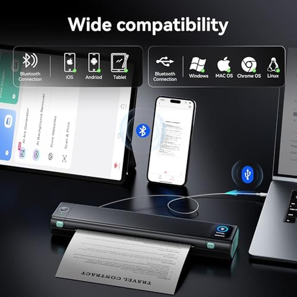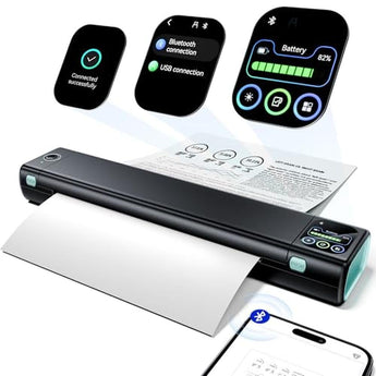 Experience the pinnacle of printing convenience with the Phomemo Portable Printer, model M08D, a sophisticated, high-end thermal printer designed for effortless printing on-the-go. This premium device boasts a refined touchscreen interface and seamless Bluetooth connectivity, enabling users to print wirelessly from their iOS, Android, or PC devices. Perfect for travel, home, or office use, this upscale portable printer supports a wide range of paper sizes, including 8.5"x11" US Letter and A4. With its advanced thermal inkless technology, users can enjoy mess-free printing without the need for ink cartridges, making it an ideal choice for those seeking a high-quality, low-maintenance printing solution. The Phomemo Portable Printer is designed to elevate your printing experience, providing a superior level of convenience, versatility, and performance.