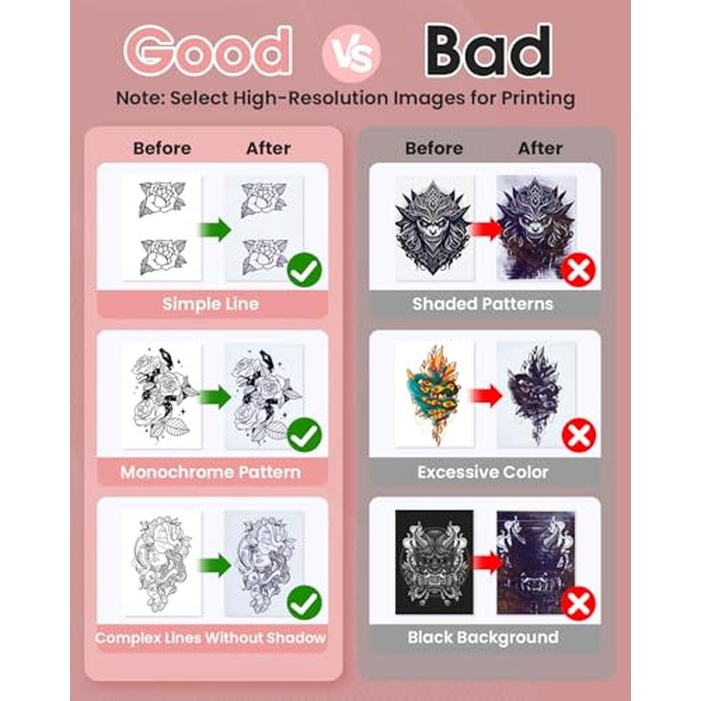• The inclusion of 10 pieces of transfer paper enables immediate start of tattoo printing, making it an ideal choice for both beginners and seasoned professionals.