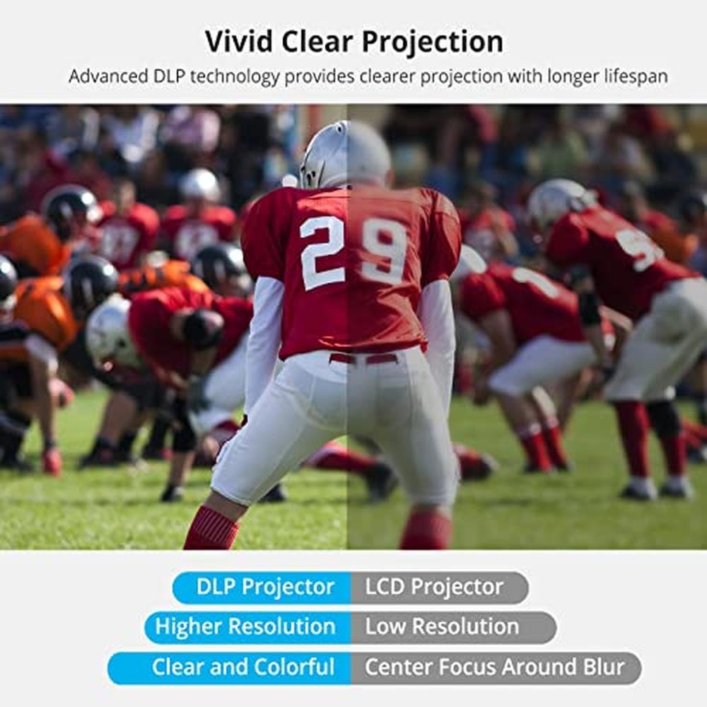 - This 1080P DLP projector boasts a built-in battery and runs on the Android system, providing an intuitive interface and access to a wide range of apps