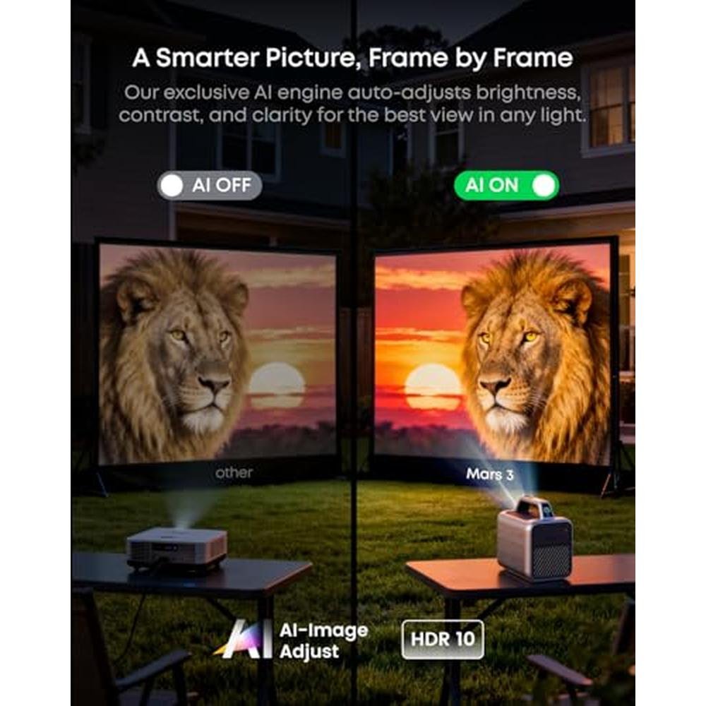 Nebula Mars 3 | Anker Outdoor Portable Projector 1000 ANSI Lumens AI-Powered Image | 5-Hour Playtime Android TV 200-Inch Home Theater