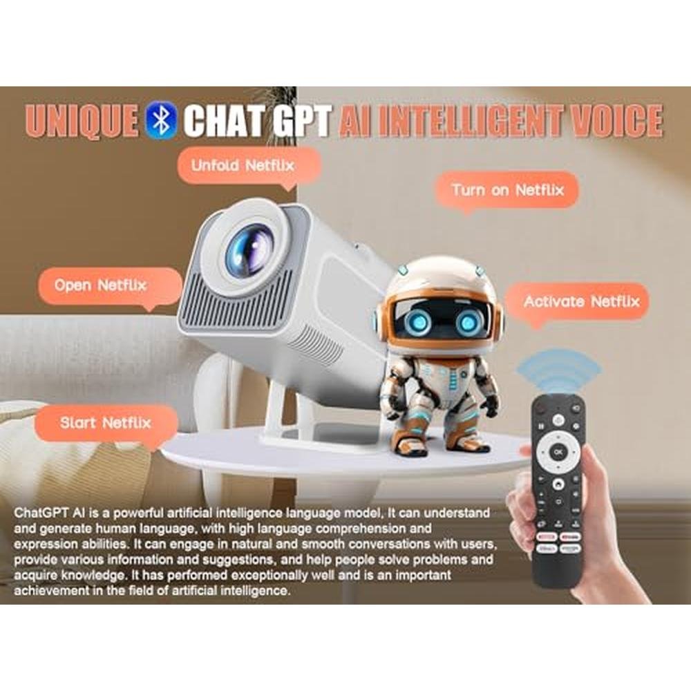 Immerse yourself in the ultimate home theater experience with our Netflix Licensed Smart Mini Projector, expertly designed for streaming your favorite shows and movies from Netflix, Disney+, and more. With native 1080p resolution and 4K support, this portable projector delivers crisp and vibrant images, making it ideal for indoor and outdoor use. Our HY320 NTV model comes with official apps, WiFi, and Bluetooth connectivity, allowing you to seamlessly stream content from your devices. Whether you're looking for a projector that is Netflix compatible or a Netflix certified device, our smart mini projector is the perfect solution, eliminating Netflix not working on projector issues and providing an unparalleled viewing experience. The HY320 NTV Whale OS Smart Projector features officially integrated TV Apps and a ChatGPT Voice Assistant, further enhancing your entertainment experience. Enjoy a world of limitless entertainment with our premium-grade, high-performance projector, engineered to redefine your home theater and outdoor movie nights.