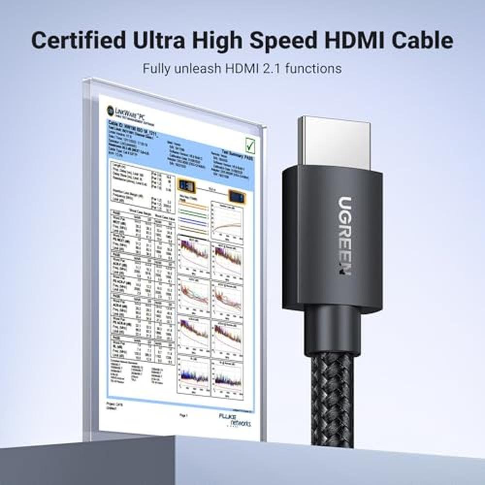 UGREEN HDMI 2.1 Cable Certified 8K 10FT Ultra High Speed HDMI Cord Braided 48Gbps 4K@240Hz 10K@60Hz with Dynamic HDR eARC Dolby Atmos HDCP Compatible with PS5 PS4 Xbox Roku TV HDTV Blu-ray Projector
