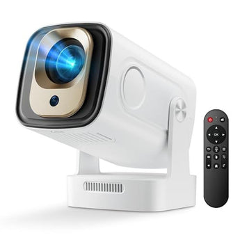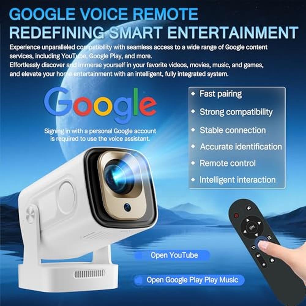 Product Name: Mini Smart Projector with 4K Support and 200 ANSI Lumens. Unique Features: This compact projector delivers crisp native 1080P visuals with 200 ANSI lumens brightness and 4K support. A perfect wireless projector for home, office, or travel use. Product Specifications: Brightness: 200 ANSI Lumens, Resolution: Native 1080P (Supports 4K decoding), Operating System: Android TV 11, Noise Level: <25 dB, WiFi: Dual-band WiFi 6 (2.4G/5G), Bluetooth: Bluetooth 5.4, Projection Distance: Up to 2 ft (0.6 m) from just 8.2 ft (2.5 m), Stand: 180 adjustable stand for flexible ceiling, wall, or tabletop use. How to Use: Power on for instant TOF auto focus. Connect to WiFi, log into your streaming apps (YouTube, Netflix, Prime Video, etc.), and enjoy. Supports screen casting and voice control for effortless setup. Compatibility: Supports Google Play app downloads and works with Bluetooth speakers, headphones, and mobile devices. Ideal for bedrooms, living rooms, dorms, or outdoor settings. Package Contents: 1x Mini Projector, 1x Remote Control with Voice Support, 1x Charger, 1x User Manual. Care & Maintenance: Keep away from moisture. Use a lens cloth to clean the lens regularly. Power off and store safely when not in use. Target Users: Designed for young professionals, small families, renters, and anyone seeking smart home entertainment in compact spaces. Usage Scenarios: Perfect for bedroom movie nights, home theaters, office presentations, camping trips, or dorm room fun.