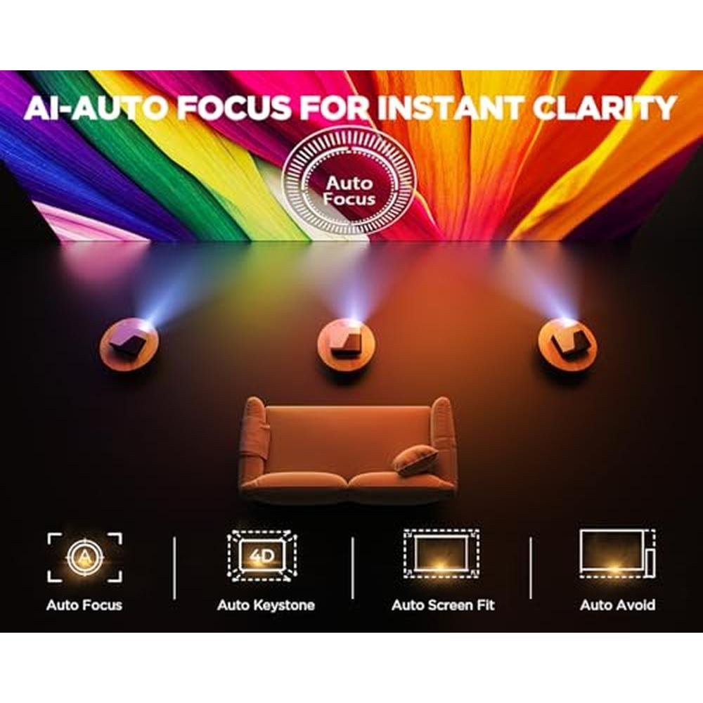 Experience the thrill of exploring new worlds and discovering new favorites with our projector's built-in apps, including Netflix, Youtube, Prime Video, Hulu, Disney+, and more. With 5G WiFi 6 and Bluetooth connectivity, you can easily connect to your devices and enjoy seamless streaming. Our projector is designed to provide a premium-grade viewing experience, with advanced features like AI auto-focus and a native 1080p resolution.
