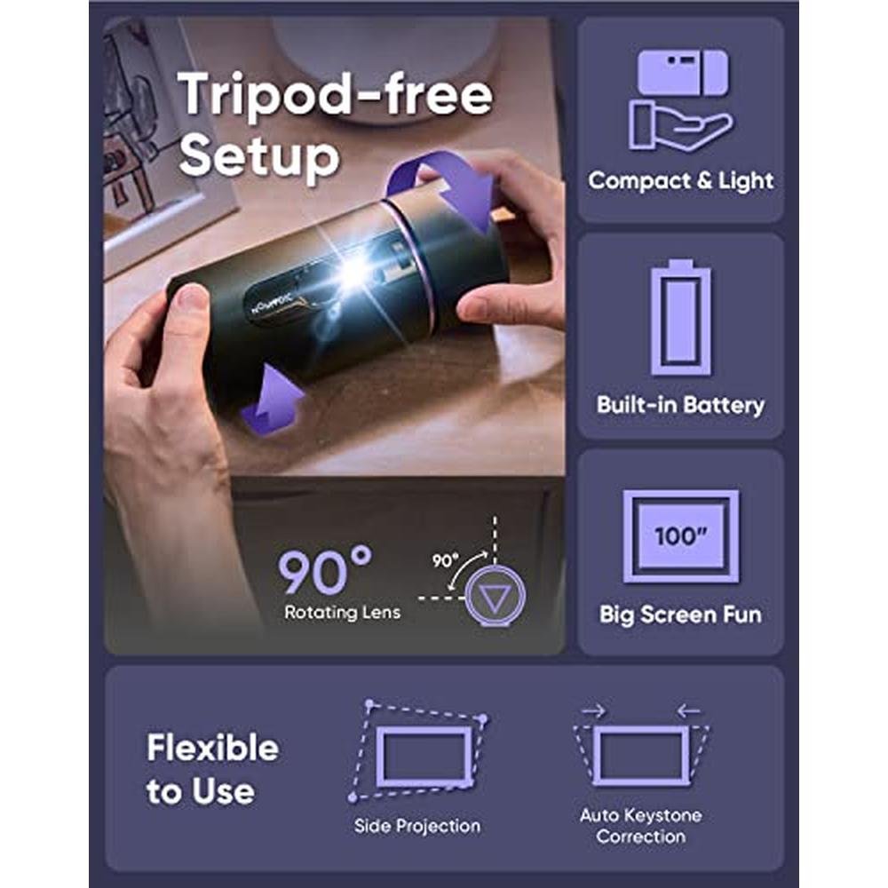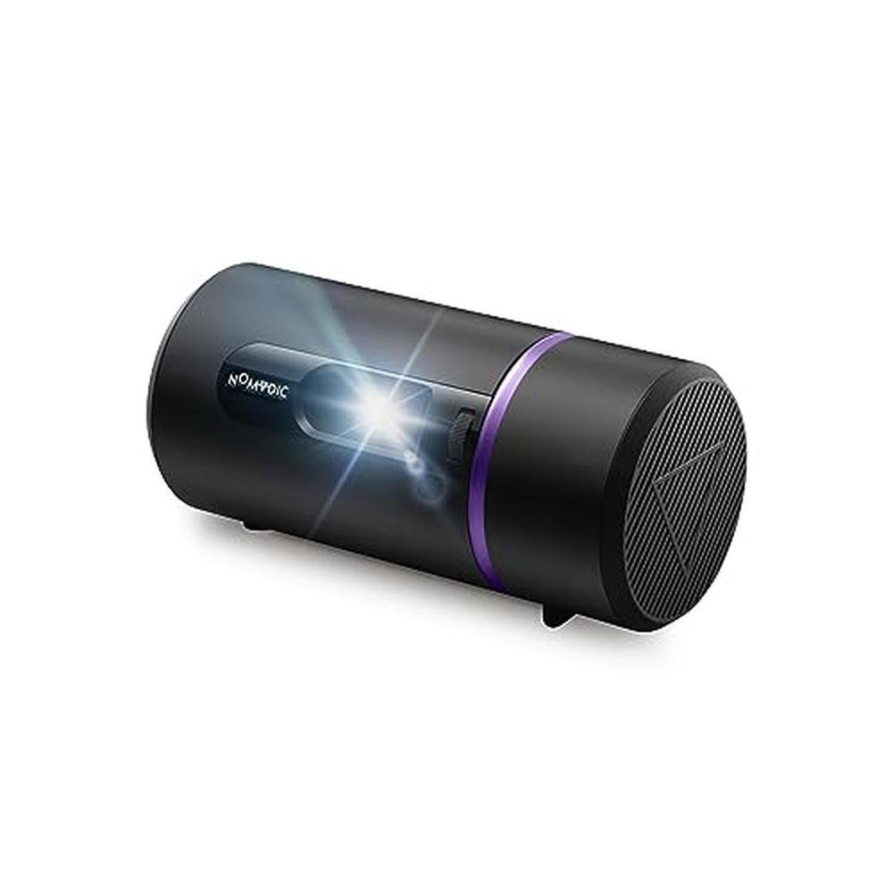 NOMVDIC R150 Mini Projector, Portable Battery Operated Projector with 4hrs of Playtime , Ceiling Projector with 90 Rotating Lens, 6W Harman Kardon Speaker, Auto Keystone