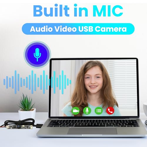 8MP USB Camera Module with Microphone Wide Angle 105 degree, Computer Camera Fixed Focus 4K Lightburn Camera for Laser Engraver Embedded UVC Webcam Board Tiny USB Security Camera for PC, Laptop, Raspberry Pi