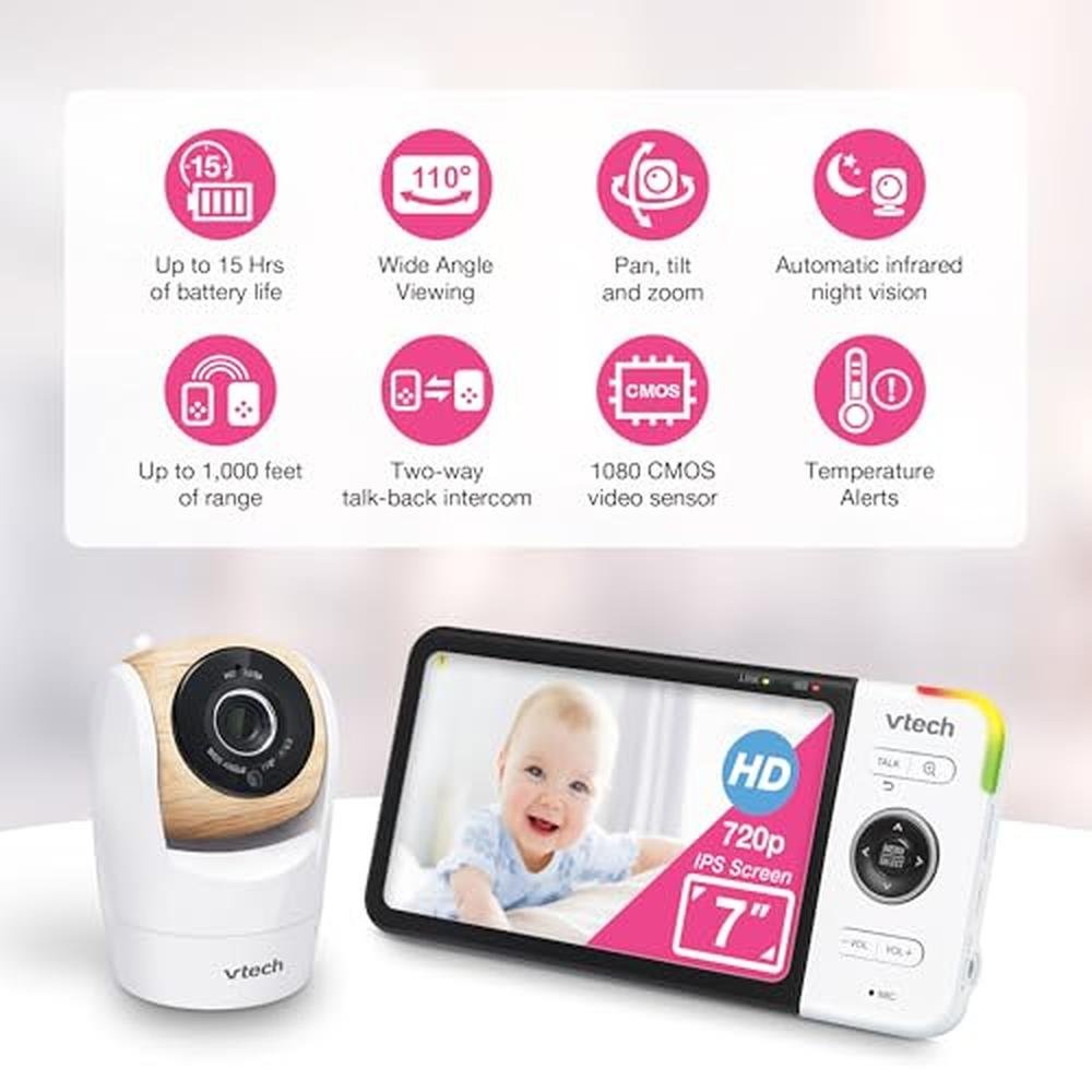Equipped with a 7" 720p screen, this baby monitor provides crystal-clear video, ensuring you never miss a moment of your child's precious milestones.