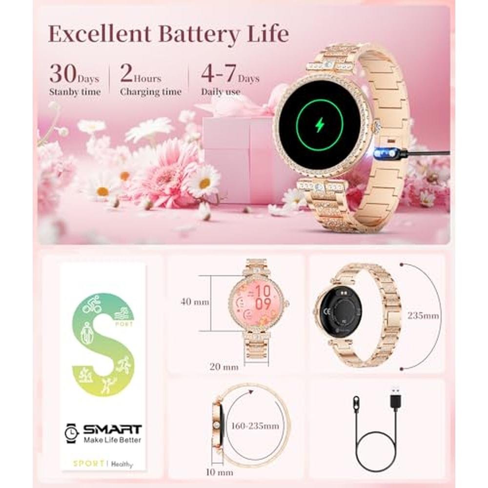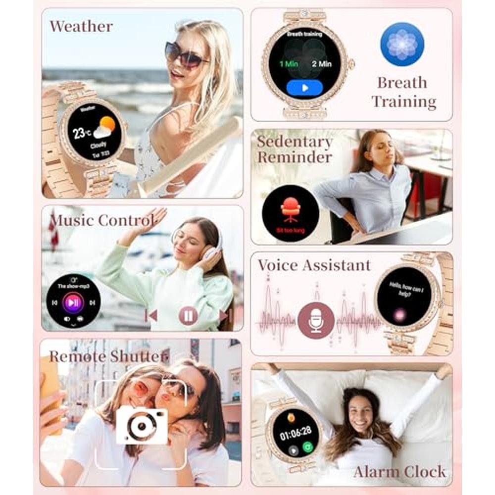 Experience the ultimate fusion of style and functionality with the ESFOE Smart Watch, expertly designed for women. As a premier choice among women's watch best buy options, this 1.19 AMOLED smartwatch enables you to answer calls, track your fitness goals, and monitor your heart rate and sleep patterns. With its IP68 waterproof design and support for over 100 sports modes, this pedometer watch is ideal for active women who want to stay connected and on top of their game. Compatible with both Android and iOS phones, this rose gold women watch is not only a great gift idea but also a luxury accessory that exudes elegance and sophistication. Elevate your daily routine with the ESFOE Smart Watch, featuring a refined and exquisite design that redefines the concept of a premium-grade timepiece. Immerse yourself in a world of high-performance technology and advanced features, carefully crafted to enhance your overall wellness and lifestyle. Explore the endless possibilities of this top-tier smartwatch, engineered to provide a seamless and intuitive user experience. Unlock a new level of convenience and versatility with the ESFOE Smart Watch, the perfect accessory for the modern woman who demands the best.