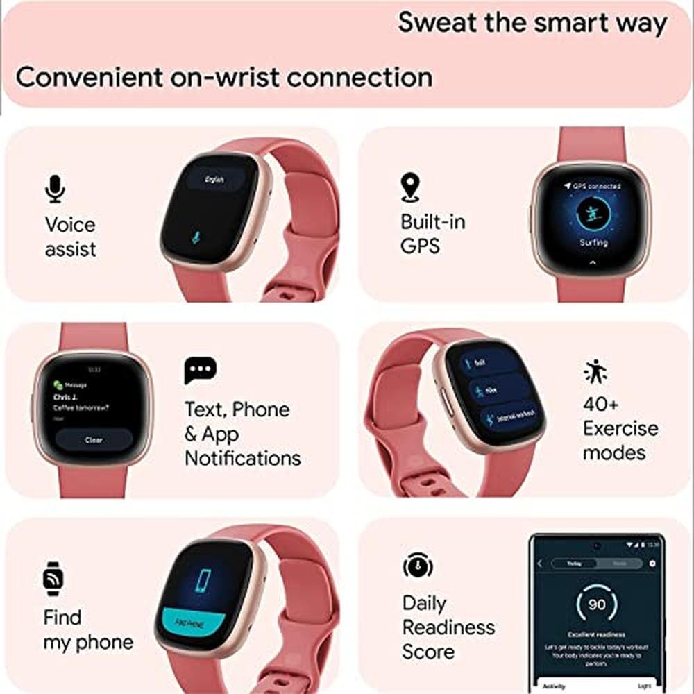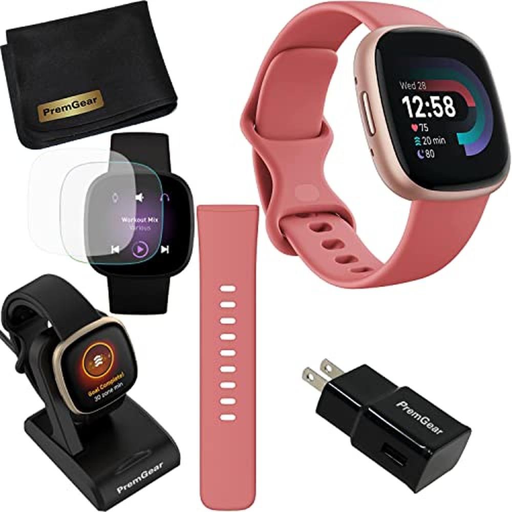 Experience the ultimate health and fitness companion with the Fitbit Versa 4 Health and Fitness Smart Watch, available in a stunning Pink/Rose color. As one of the best buys in the market, this smartwatch boasts an impressive 6-day battery life, built-in GPS, and interchangeable S & L bands for a personalized fit. Our exclusive bundle includes a 3.3-foot charge cable, wall adapter, screen protectors, and a PremGear cloth, providing you with everything you need to get started. Whether you're looking for a reliable fitness tracker or a stylish smartwatch, the Fitbit Versa 4 is an excellent choice, offering a range of features that make it a top contender in the market.