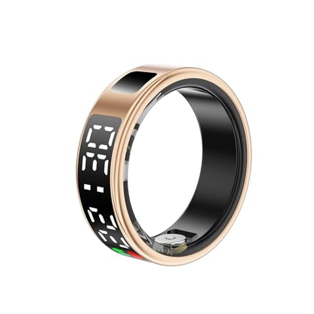 Smart Ring with LED Display, Smart Ring Fitness Tracker, IP68 Waterproof Fitness & Sleep Tracker for Women & Men with Charging Case, APP for iOS for Android, Gold (#12)