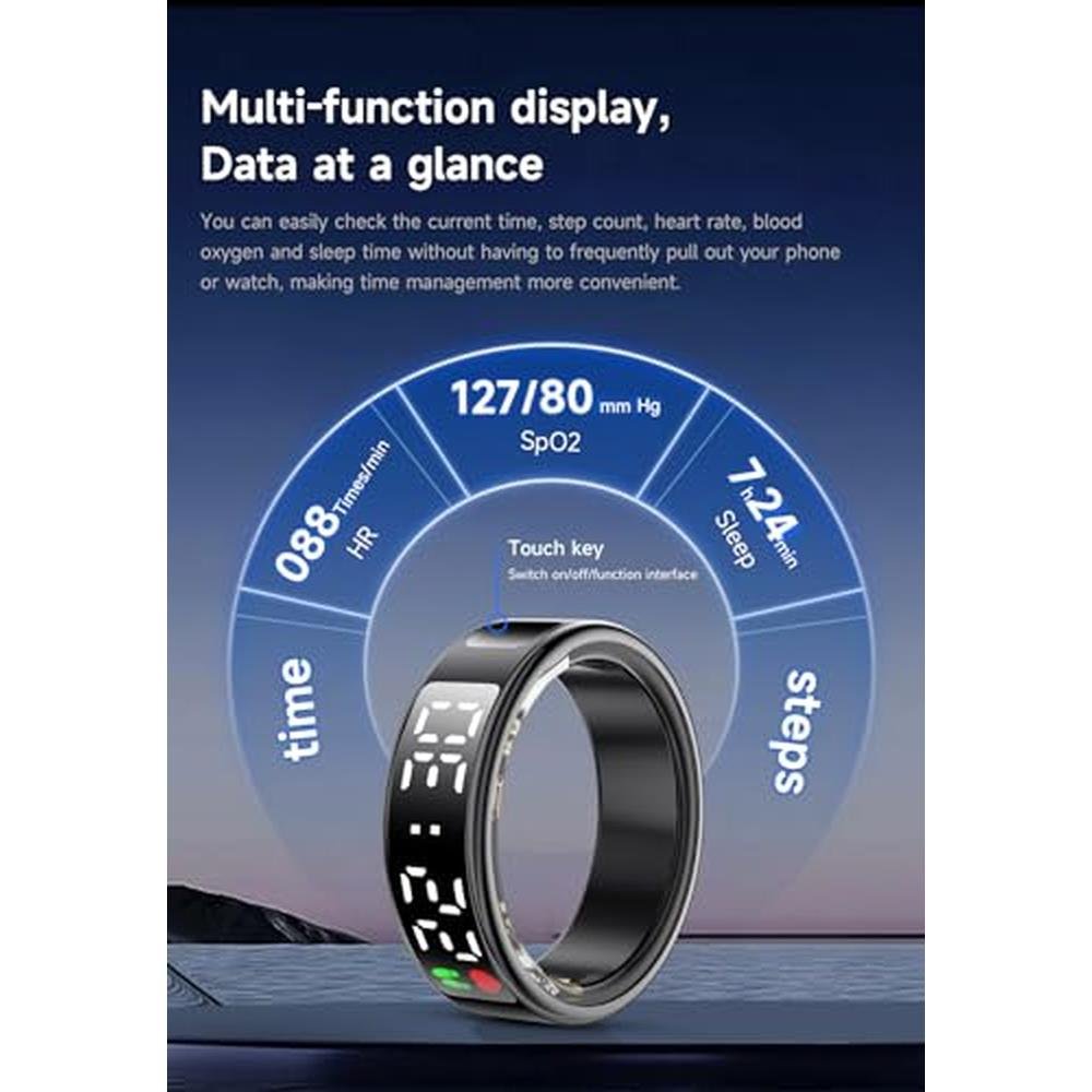 • With DisplayQuickly check the current time and step count without the hassle of reaching for your phone or watch. This feature simplifies time management by reducing the need for frequent device checks. The ring features intuitive touch buttons for easy on/off control and seamless navigation between functions.