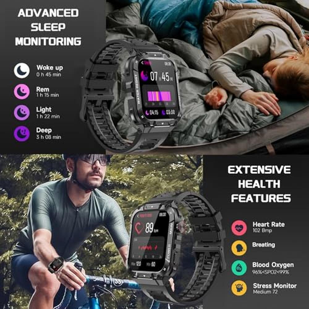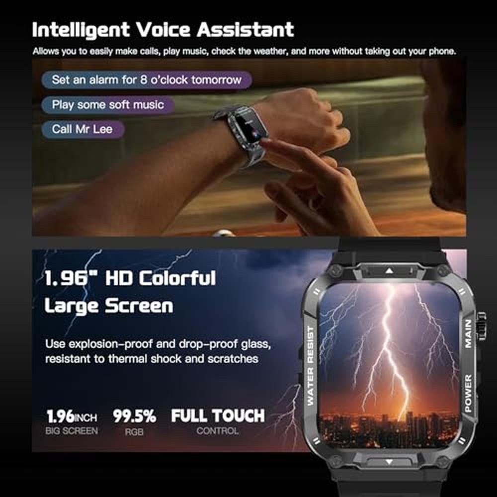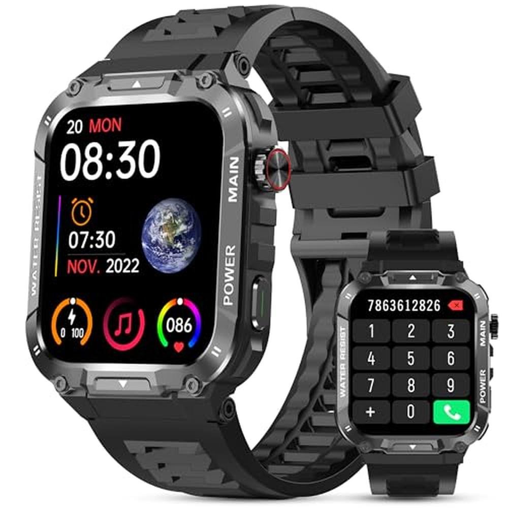 Smart Watch | Ypaddbu 1.96 Military Smart Watch for Men | Fitness Tracker with Heart Rate Monitor and Bluetooth Call Function