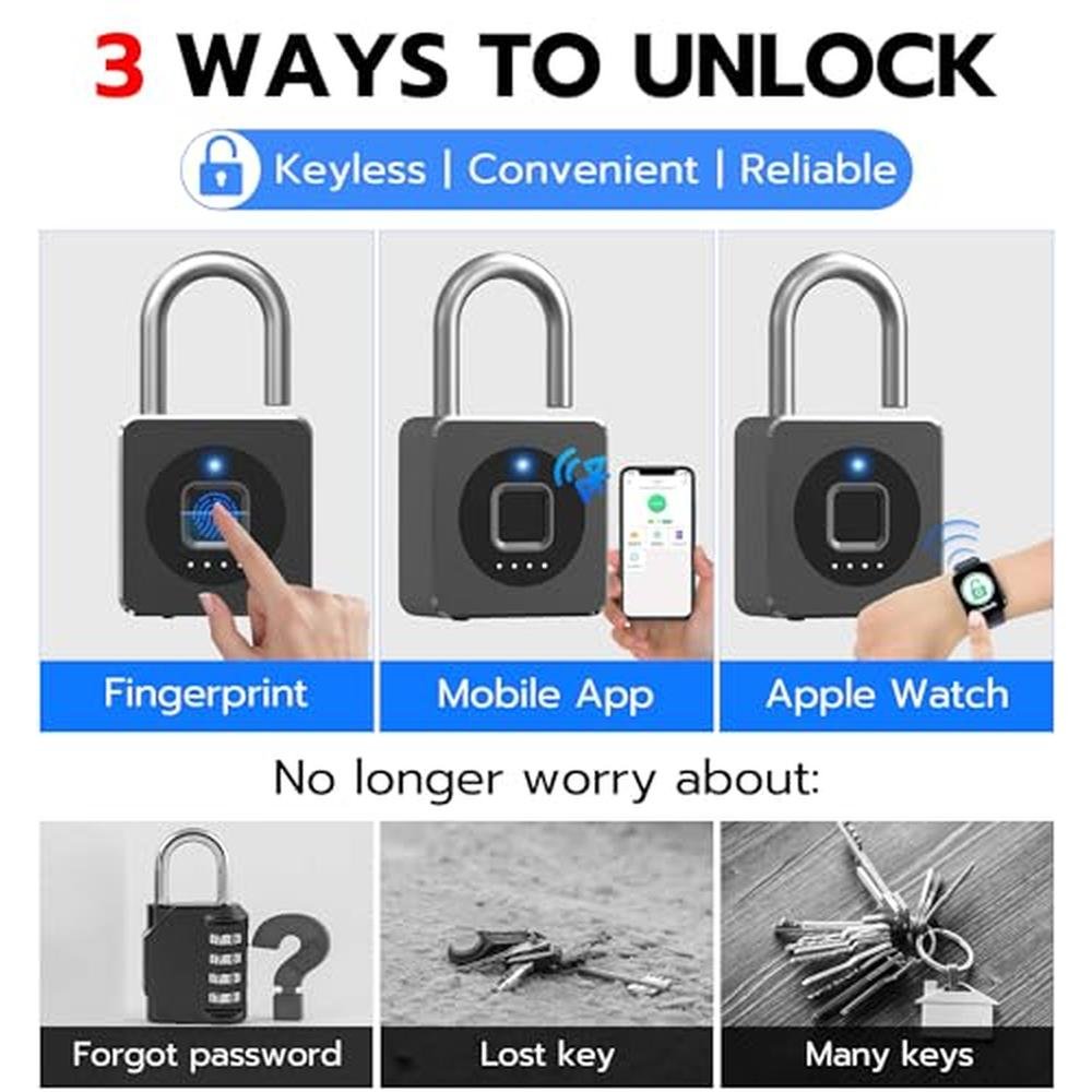 | Special Feature | 3 Unlocking Ways (Fingerprint & Mobile App & Apple Watch), Medium-Sized Padlock, IP67 Waterproof, Long Battery Life, Battery Indicator, 6-Month Free Trial Time |