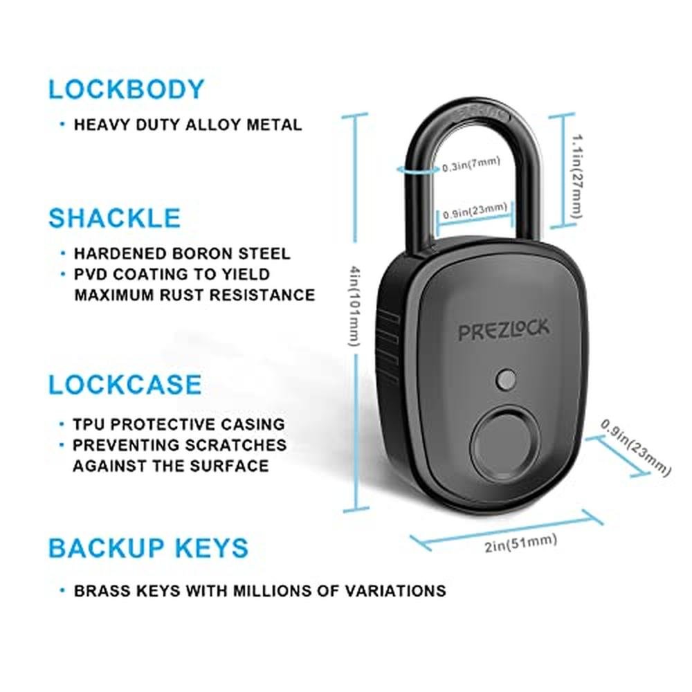 Premium Grade Padlock with Fingerprint Recognition | Prezlock BMB09LQFSPHX Heavy Duty IP65 Waterproof | Keyless Biometric Backup