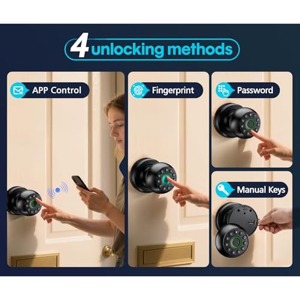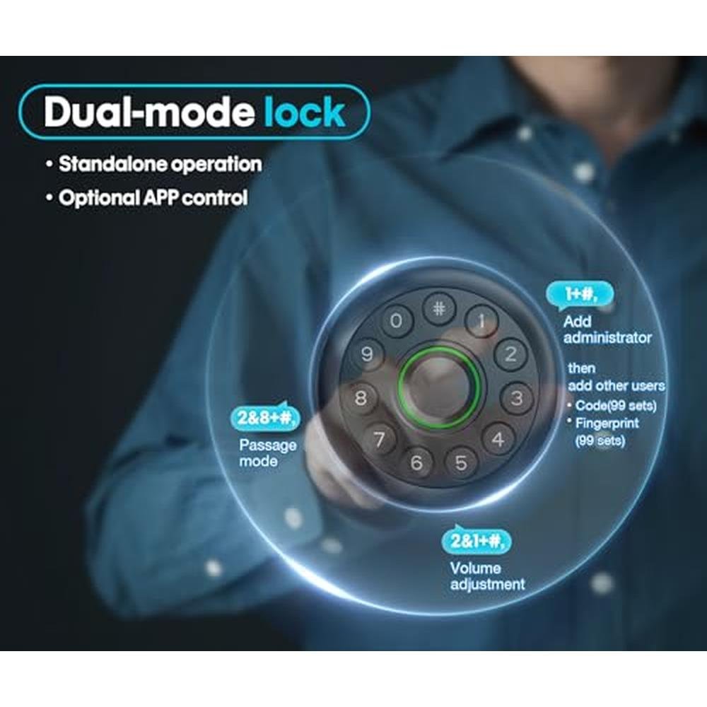 Experience unparalleled door security with the Pulido 4-in-1 Fingerprint Door Lock, a cutting-edge smart door lock that seamlessly integrates advanced biometric technology and a physical button for effortless access. This innovative keypad door knob features a large fingerprint recognizer, ensuring secure and seamless entry. With the Pulido Fingerprint Door Lock, you can enjoy unparalleled access control and peace of mind, making it an ideal solution for bedroom, office, or apartment door security. The accompanying app allows for convenient management of access, receipt of notifications, and monitoring of door activity, but feel free to use it without the app if you prefer a more traditional locking experience.